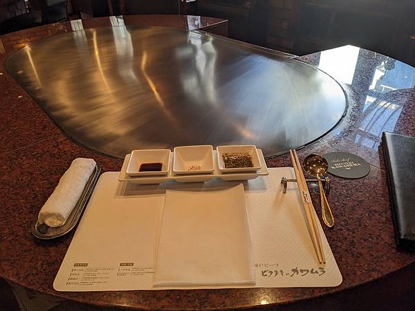剛好一群人正結帳走出來,因為也已經下午超過2點了,入內後只剩下2個人還在用餐,入座後點了特選国産牛ステーキランチ 120gロース 5,060円,包含湯品、沙拉、特選國產牛排、蔬菜盤及餐後飲品。依序上菜後,師傅出來幫我料理前特別把肉放我前面讓我拍照,接著就是看師傅表演,料理完師傅就離開,這個吧檯就剩下我一個人慢慢享用,餐後飲品點了杯咖啡。