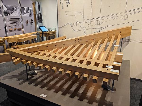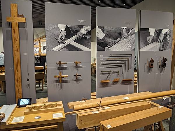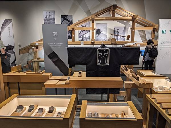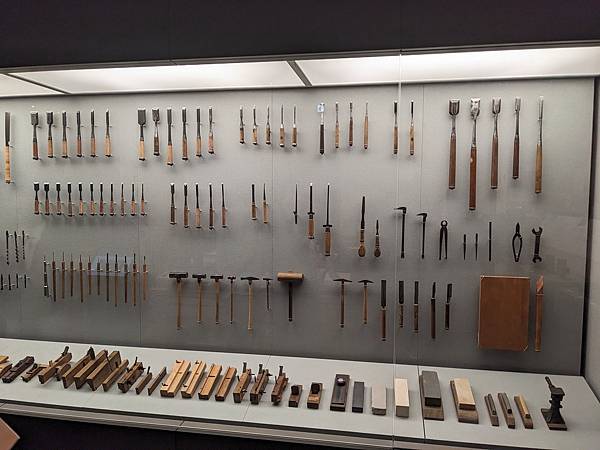 竹中大工道具館本館地上有1層樓,地下有2層,鋼骨結構搭配大量木頭建築,裡面共有七大展區,介紹世界上罕見的以多樣性和獨自性著稱的日本木匠工具的種類、構造和使用方法。還有唐招提寺金堂斗栱原寸大模型,都很值得慢慢仔細欣賞品味。
