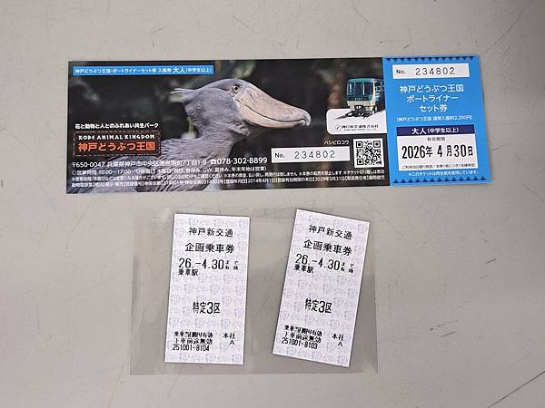 回房間準備出發前往神戶動物王國,在Port Liner三宮站售票機旁詢問處購買神戶動物王國套票,動物王國門票加上往返車票2200日幣,等於是往返的車票是免費。抵達Port Liner計算科學中心站還沒到10點開門營業,已經開始排隊準備入內,最後似乎也提早2-3分就讓購賣預售票的我們直接先進場。