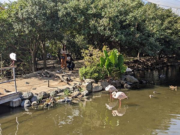 神戶動物王國園區內分為室內室外共10多個主題區域,並沒有特別的參觀順序,許多沒有危險性的動物都是放養方式,沒有欄杆圍籬,可與民眾近距離接觸。門口一進來的動物互動區多是貓狗兔子及黃金鼠等,要10點半才開放,就沒浪費時間在這裡,經過了睡蓮池,來到了鯨頭鸛生態園。