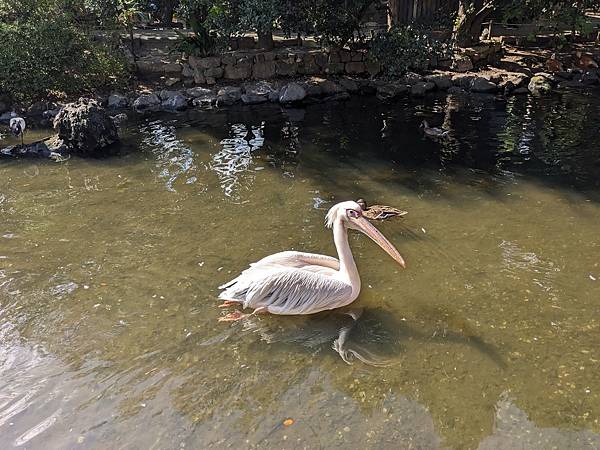 又走進了非洲濕地區域,看看告示牌12:15的「鵜鶘飛行」剛好準備要開始了,就在水池旁等候著。怎知身後突然一隻大鳥從我身旁飛過去,翅膀直接打中我,然後不受影響的飛過水池的另一側去了。