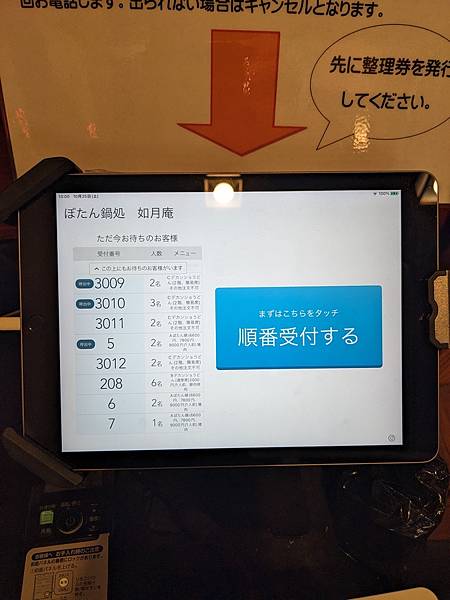 午餐準備要來去吃的丹波篠山最有名的牡丹鍋,其實就是山豬肉味增火鍋,是丹波篠山的鄉土料理。走到了如月庵內,在機台輸入資料拿到整理券,原本以為得等很久,好像是要吃牡丹鍋的順序會比較優先入場吧,畢竟價格真的貴不少。