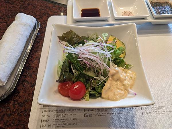 只是點了最基本款的套餐,自然無法與A4、A5等級相比,但整體味道還是不錯,離住宿的東橫INN飯店及三宮車站都很近。