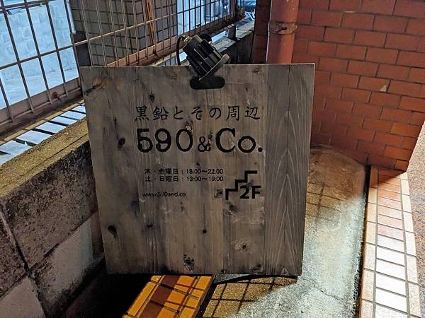 看到一樓大樓門口前擺放木製小立牌,直接走進大樓上到2樓,然後推門走進去,590&Co.主要販售鉛筆及石墨筆芯文具相關商品。