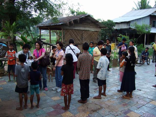 三天的吳哥遺跡之旅在此時告了一個段落,在要離開的途中,行經一間孤兒院,團員裡有些人把下午茶沒吃的蛋糕請酒店打包帶來要給他們吃,也有人從台灣帶來了400枝鉛筆都沒發出去多少,最後都送給孤兒院的小朋友。
