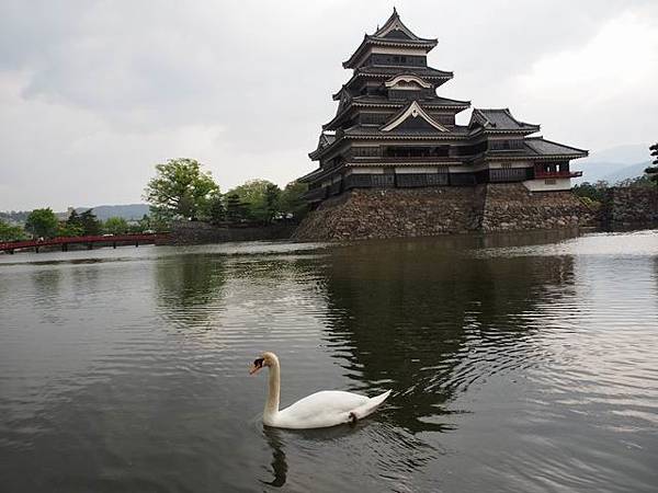 今天的早餐是日式定食,吃完後很快又要準備出發前往松本城,松本城與姬路城、犬山城、彥根城同為受日本政府指定為國寶的古城,不過車子快抵達松本城就開始飄雨,所幸下車撐一下傘雨就停了。