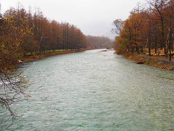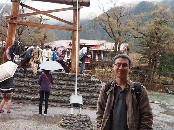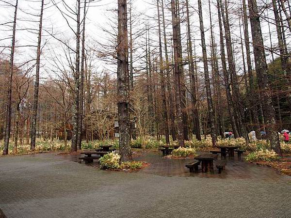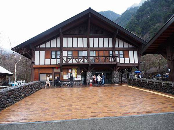 下雨天來到上高地已經知道不太妙,加上前幾天也有下過大雨,大正池的水位都滿了,一旁的步道也不適合行走,原本預定要從大正池走到河童橋散策也只能取消,直接抵達上高地旅客服務中心後從這邊走到河童橋去拍拍照。