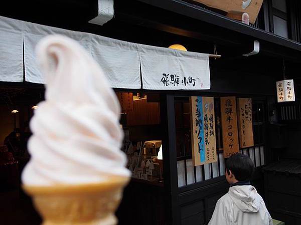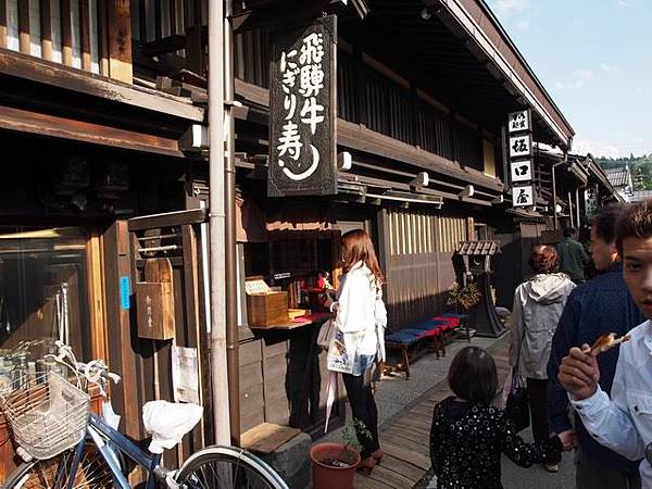 逛完高山陣屋後,就是吃吃喝喝採買行程,上三町內的商店街有釀酒屋、味曾店、藝品店、飲茶店、小餐館等,來到這邊不免俗的要買一下飛驒娃娃做紀念,吃支飛驒牛串燒,又來個桃子口味的冰淇淋。另外導遊有介紹了飛驒高山麥酒所釀造獨特的瓶內二次發酵啤酒,我也在街上找了好久才找到一家有在賣,價格是連日本人都覺得貴的500ml要日幣920,反正也不知道以後是不是會有機會再度造訪高山市,就買了一瓶晚上來試試看吧。