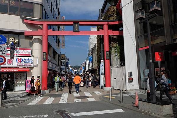 走到江之島後,江島神社前面商店街還是滿滿人潮購物跟品嚐美食,這時江島神社排隊參拜的人依舊不少,跟著參拜完之後往江之島展望燈塔走去,一路都是往上爬的路線,很奇妙的是居然有設置了電動手扶梯,不過需要付費才能搭乘,可是電梯只往上,要下來還是得慢慢走才行,因為本來就沒計畫要進去展望塔,所以就回來找個店家吃晚餐吧。