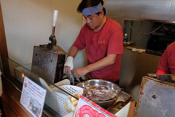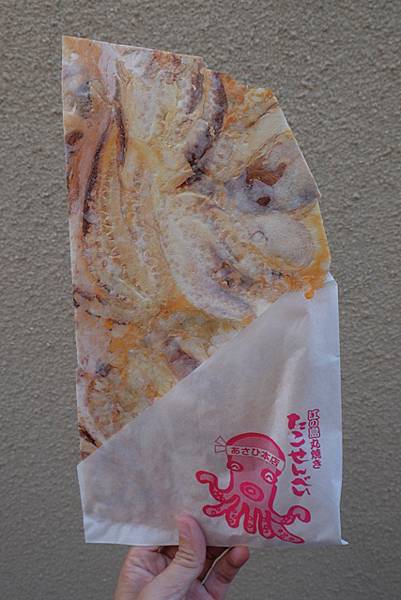 離開高德院前往長谷寺的路上,看到一旁店家很像在賣可麗餅的店家,停下來看一下居然是不一樣的章魚燒啊,將3隻章魚裹粉後放入鐵板後以高溫壓製而成章魚仙貝,買了一片來嚐嚐看,燒燙燙的口感酥脆真是讚,心想臺灣人怎麼還沒學回來開店啊。