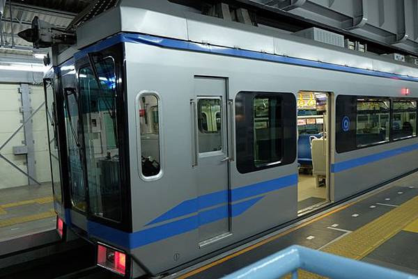 回到江之島站後,來搭看看湘南單軌電車吧,跟一般的LRT捷運不一樣的是,湘南單軌電車是以懸吊方式於半空中行駛,只是因為天黑了,看不到外面的景色,否則速度一點都不慢,想必白天搭乘起來感覺更不一樣才對。