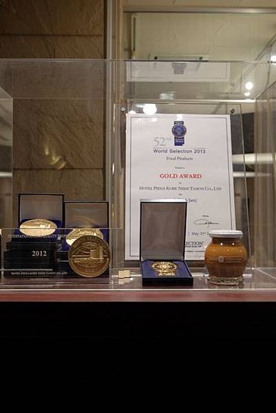 一樓大廳有提供果醬試吃,如果喜歡的話除了早餐可以吃到,也可以買幾瓶帶回去贈送親友。PATRIE菓子工房本店受獎表揚的獎牌也放置在這,焦糖果醬更是連續9年得到金賞。