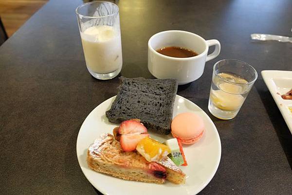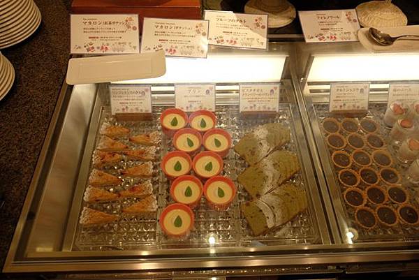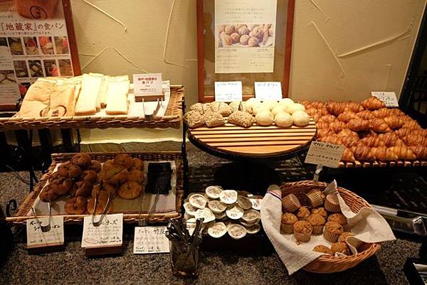 一進去就看到了馬卡龍、水果塔、提拉米蘇跟蛋糕等等,而麵包是採用神戶「地蔵家」製作的,