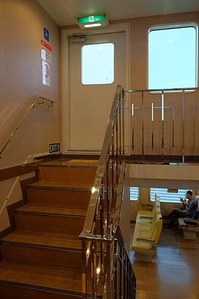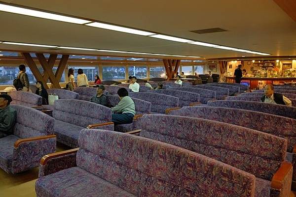 二十四の瞳映画村到土庄港大約有25公里,所以回到ORIX頂多接近5點而已,加滿油歸還車輛後,在附近的小7買了東西,搭上1730的船班準備回到高松港,不過回程的這艘船就比較舊了,座位的編排設計上跟早上那艘船也不同,1小時之後我又回來高松港。
