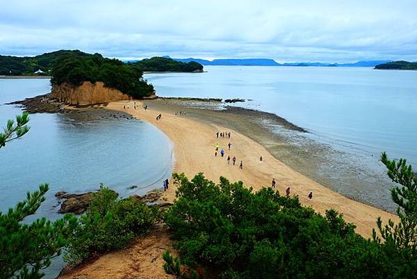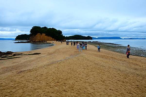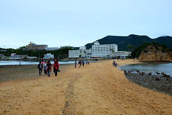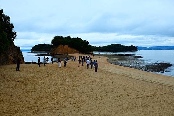 這個時間點剛好是退潮,所以來天使散歩道陸續越來越多,不過走過這條天使散歩道到對面後也要小心,畢竟退潮後地上濕滑,我是很怕不小心滑倒都走的小心翼翼的。走回來之後也可以到上面的展望台,從高處遠望這天使散歩道。