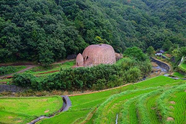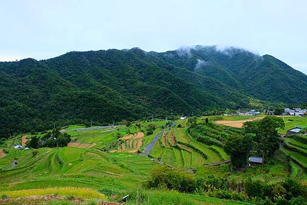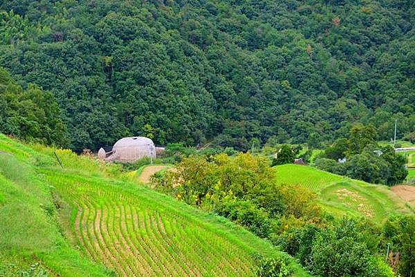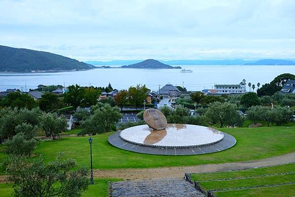 中山千枚田是日本棚田百選之一,最美的時候是稻穗金黃色的時候,今天又湊巧是個陰雨天,下方還有個臺灣藝術家的作品橄欖之夢,雖然瀨戶內海藝術季已經結束了,不過橄欖之夢還是持續放在這邊。