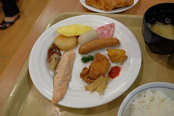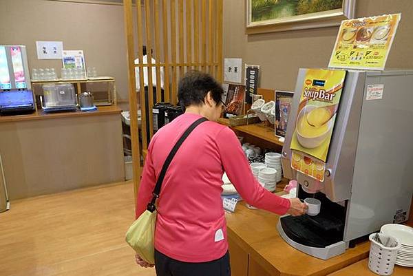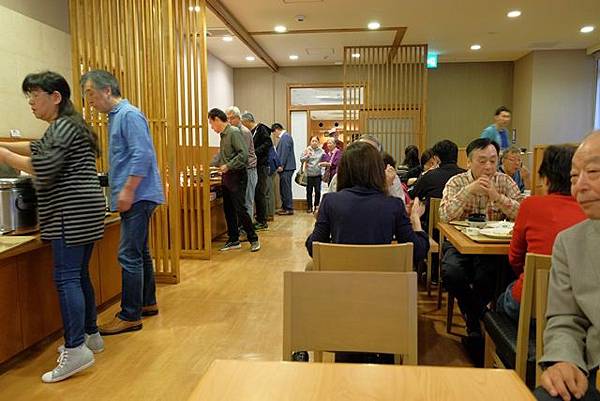 一樓大廳旁邊的餐廳提供簡單的免費早餐,所以用餐時間真的很多人。整體來說,ホテルルートイン盛岡駅前CP值還算滿意。