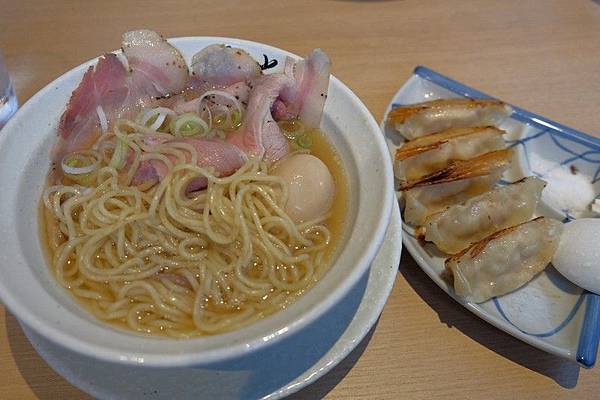 排了不到10分鐘就有位置,直接帶我們到2樓的座位,這裡的湯頭跟以前之過的魚介系不太一樣,貝系湯頭還真是第一次吃到,點了淡竹拉麵,湯頭滋味很鮮美。我加點了蛋跟餃子,旅伴加點了叉燒飯跟餃子。