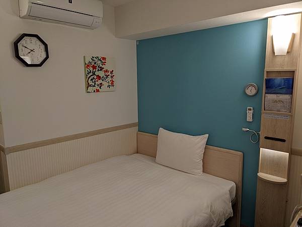 東橫INN房間內部其實都差不多,房間雖不大但把椅子挪開空間喬出來還是能把26吋行李箱完全攤開,7400日幣含早餐週六價格來說很不錯